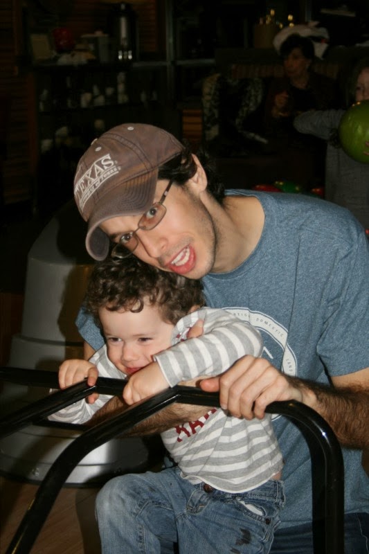 We all went bowling for Brad's birthday that night. Jaren and Noah were very competitive.
